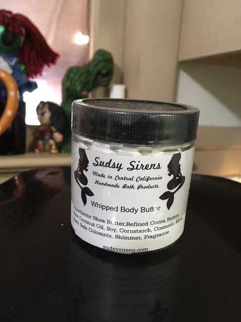 Another great item from Sudsy Sirens, this Gomez body butter smells like a good humidor. It smells like leather chairs and smoking jackets and cigars with large glasses of brandy.